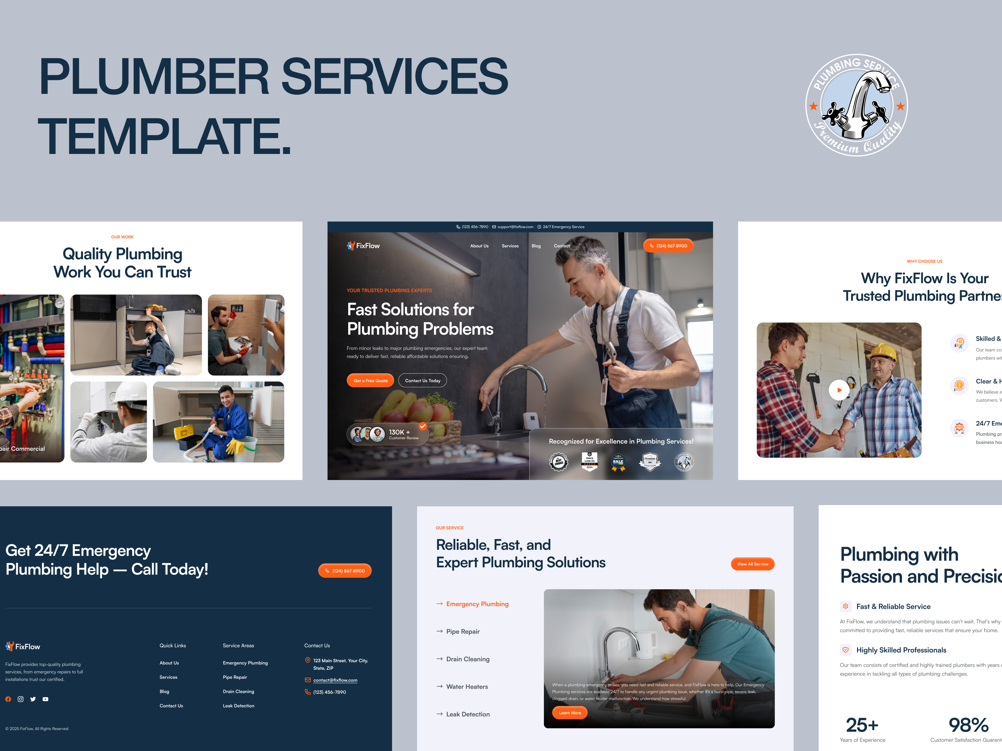 Fixflow - Plumbing Service Website Template Perview Link: https://fixflow.framer.aiFixflow is a clean, responsive plumbing service website template designed to help plumbing businesses quickly build a professional online presence. It features easy customization with drag-and-drop builders, mobile-friendly layouts, SEO optimization, and essential sections like services, contact forms, testimonials, and service area highlights, making it simple to attract and convert customers efficiently. Features Included: Pages: Homepage, About Us, Service Page, Service Details (CMS), Blog Page, Blog Details (CMS), Contact US, Reviews Page, 404Clean, elegant, and modern designFully responsive and mobile-friendlyFast performance and optimized speedSEO optimized for better rankingsSticky menu for easy navigationEasy to customize with no-code flexibilityCMS-driven dynamic content Refund Policy:Due to the nature of digital products, all sales are final and non-refundable. Please review the product details and features carefully before making a purchase.HOW IT WORKS After purchasing, you'll receive a remix link that will let you duplicate the template easily. SPECIAL OFFER3 months FREE on a Framer PRO Plan Yearly subscription. Make sure you use " partner25proyearly " promo code at checkout.
